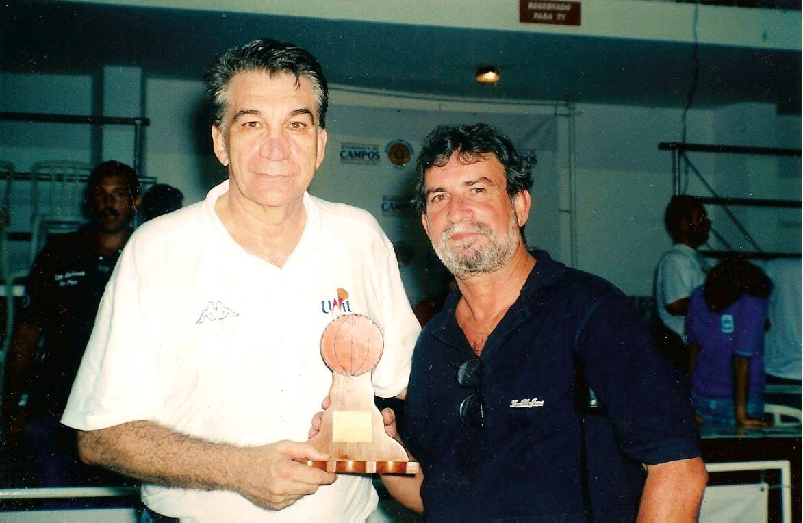 Comemoração de 1.000 vitórias como treinador de basquete. Em Campos, no Ginásio do Automóvel Clube. Troféu do NF Esportes.